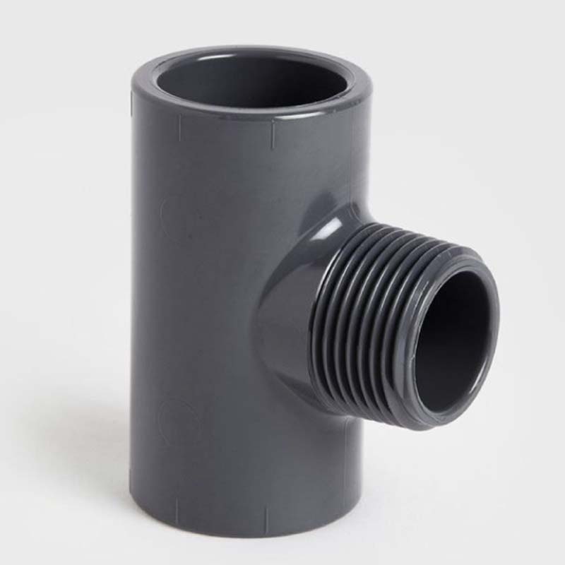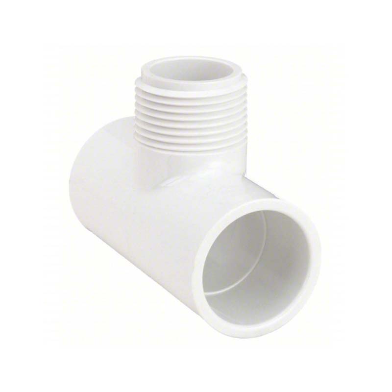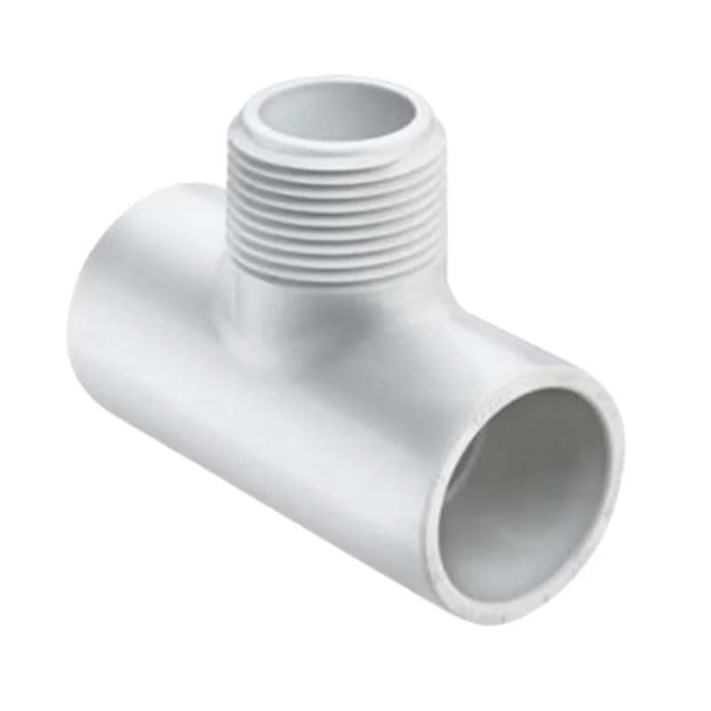 PVC ذكر تي شيرتهو موصل مع ثلاثة منافذ مرتبة على 90 درجة لتوصيل ثلاثة أنابيب معًا أو لتحويل السوائل. يطلق عليه TEE "ذكر" لأن أحد أو كلا طرفي TEE عبارة عن خيوط ذكور ملولبة يمكن ثملها في تركيب الأنثى ويمكن إدخال المنافذ الأخرى في نفس أنبوب القطر.